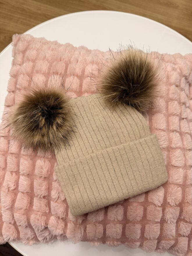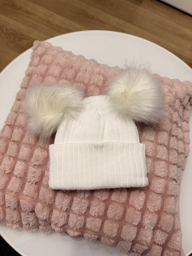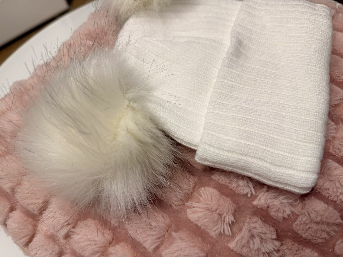 Czapki dziecięce biała beżowa z pomponami jesień zima 1-2lat
