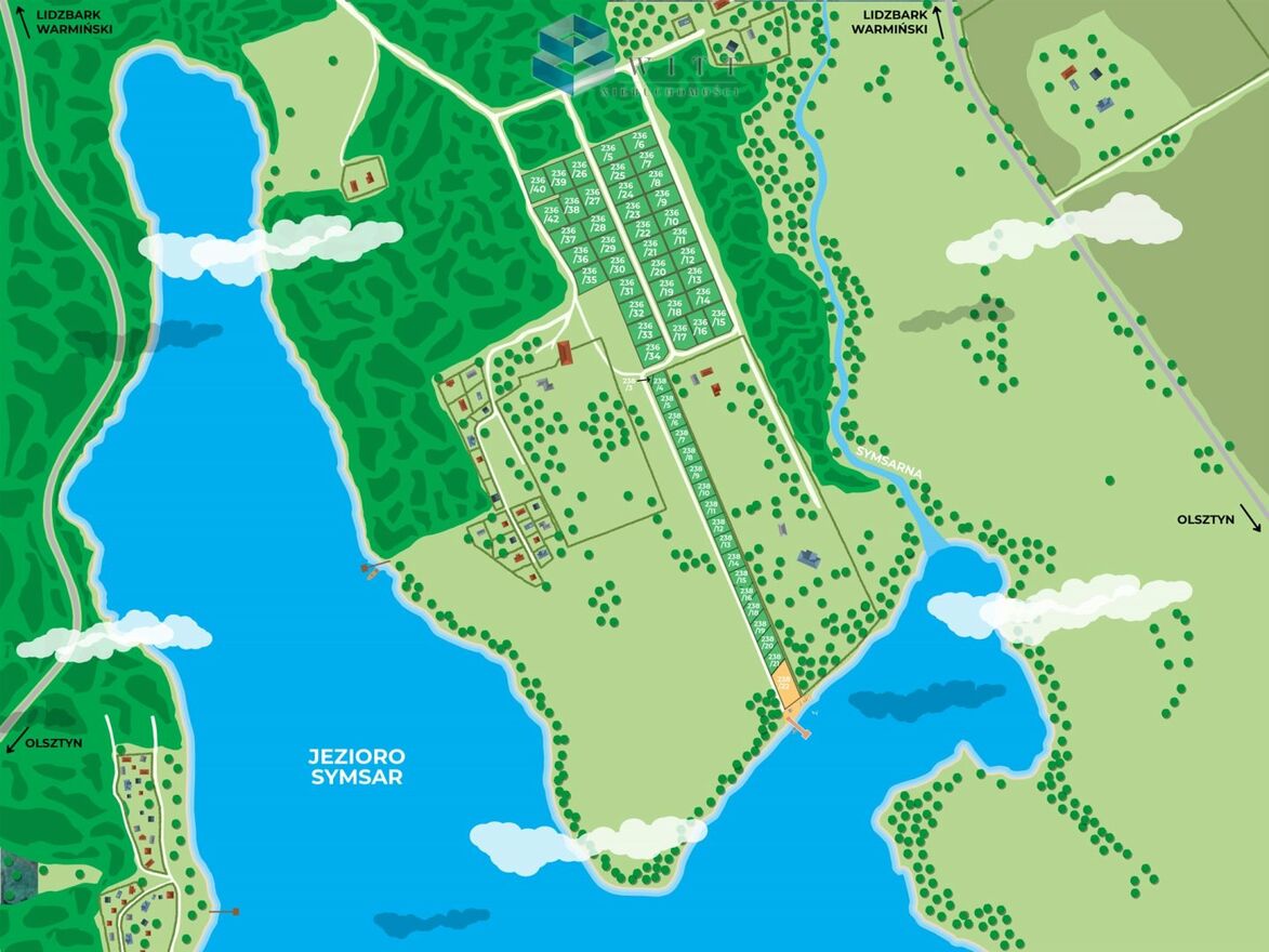 Twoja działka z prywatnym dostępem do jeziora!Kompleks działek posiada prywatny dostęp do jeziora z miejscem przeznaczonym na plażę . Chcesz wypoczywać wewnątrz półwyspu przepięknego jeziora Symsar otoczonego starodrzewiem lasów państwowych? To wspaniałe miejsce to także znakomita baza wypadowa na piesze i rowerowe wycieczki. Co byś powiedział na kolację po aktywnym wypoczynku złożoną ze świeżych ryb samodzielnie złowionych w jeziorze? Może właśnie tutaj postawisz swój dom zaledwie 7km od Lidzbarka Warmińskiego.